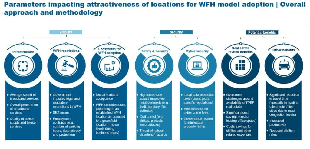 Each of these parameters plays a crucial role in an organization’s selection of services delivery locations for a WFH environment.