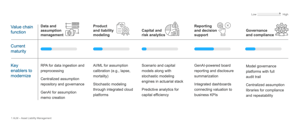 No part of the actuarial value chain is immune from modernization, and leading carriers are pursuing improvements across pricing, valuation, governance, capital management, and more. While progress varies by business line and company, the direction is clear: towards more automation, integration, and strategic insight delivery. Here’s a look at how modernization is playing out in key actuarial domains.