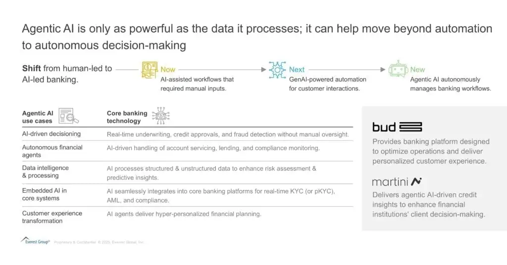 Providers such as Salesforce, AWS, Microsoft, Google, and Automation Anywhere are already integrating AI agents into banking ecosystems, embedding intelligence into automated lending, wealth management, and real-time risk assessment.