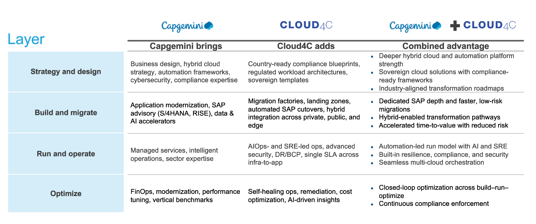 Capgemini + Cloud4C is not just a richer services stack; it is a repositioning move that enables Capgemini to credibly compete where resilience, sovereignty, and local trust are non-negotiable. This strategic alignment converts operational enhancements into market access and client stickiness, creating a more defensible growth path.
