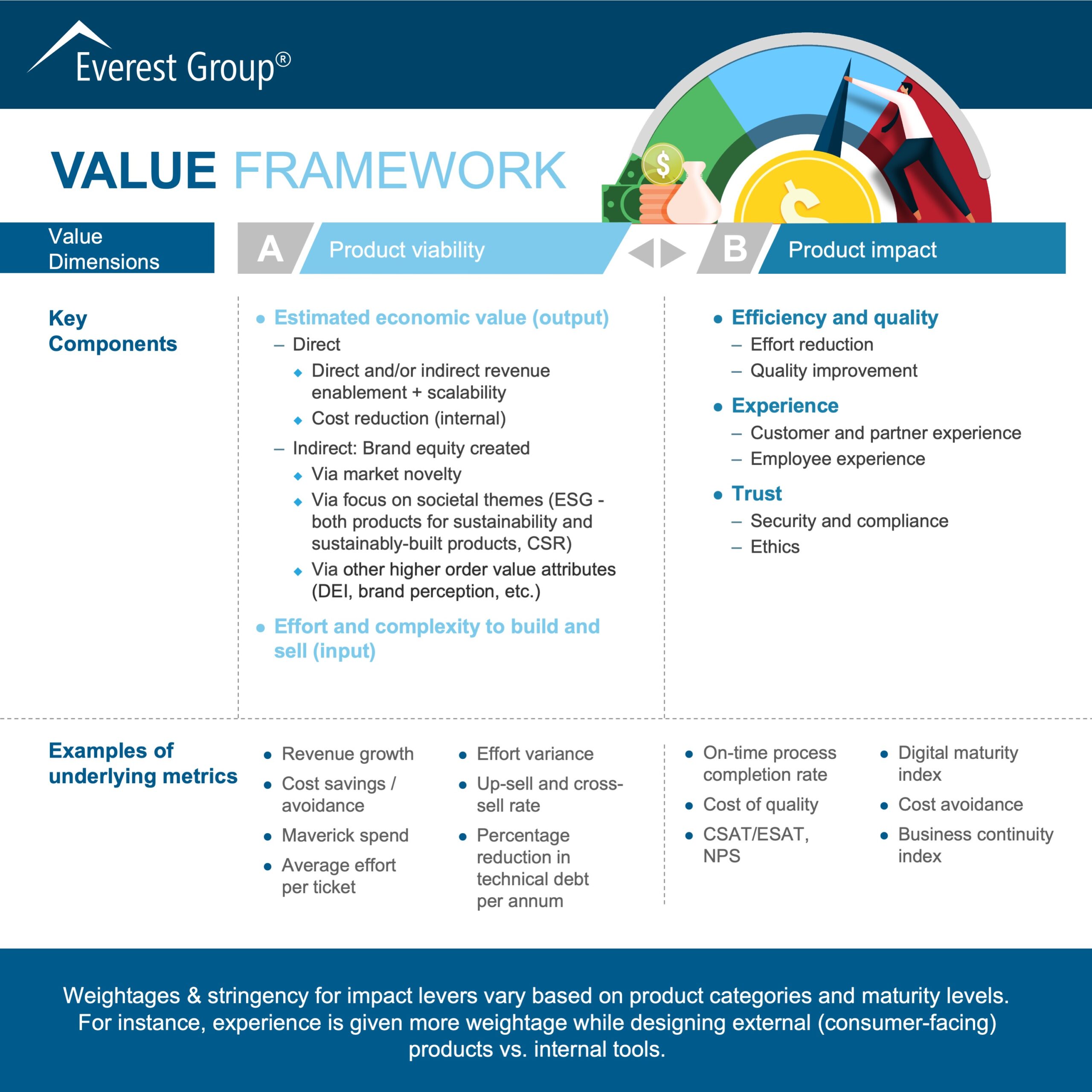 New-age operational KPIs such as agility index and Digital Maturity Index (DMI) are gaining traction among enterprises to help track efficiency. Experience is increasingly becoming more important in making product decisions, and enterprises leverage user surveys as leading indicators to understand future adoption levels. Tools like Adobe Experience Manager, Sitecore XM, etc., also are gaining popularity to capture experience across product lifecycles. Trust is seen more from a cost-avoidance angle and becomes the foundational design principle for technology companies like Microsoft, Google, Amazon, Salesforce, etc.
