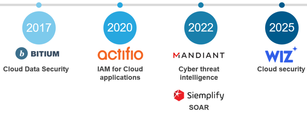 Google’s acquisition of Wiz aligns with its broader strategy of strengthening its cybersecurity portfolio through targeted, segment-specific investments. Over the years, Google has pursued inorganic growth in cybersecurity, acquiring companies that address distinct areas of cybersecurity.