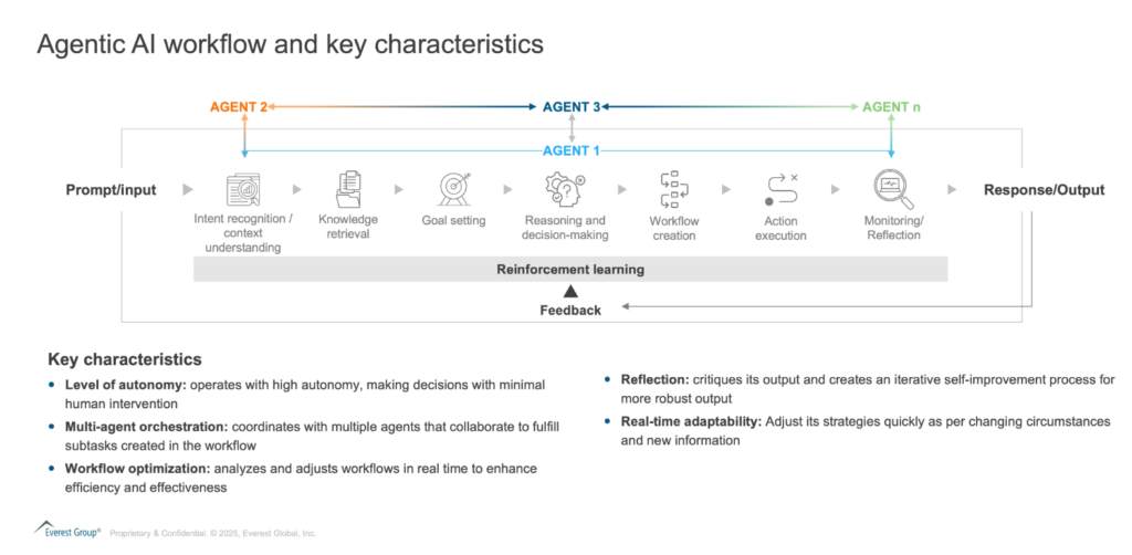 Unlike conventional Generative AI (gen AI) that primarily outputs text or visuals, Agentic AI orchestrates end-to-end processes, from understanding requests to executing workflows. This design fosters greater automation, dynamic learning, and self-improvement, significantly reducing human intervention while boosting accuracy and efficiency.