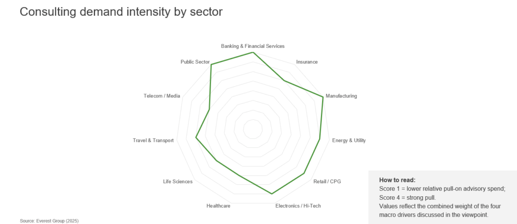 The heatmap below highlights the varying intensity of consulting demand across regions, reflecting the differentiated impact of tariffs and fiscal reforms globally.