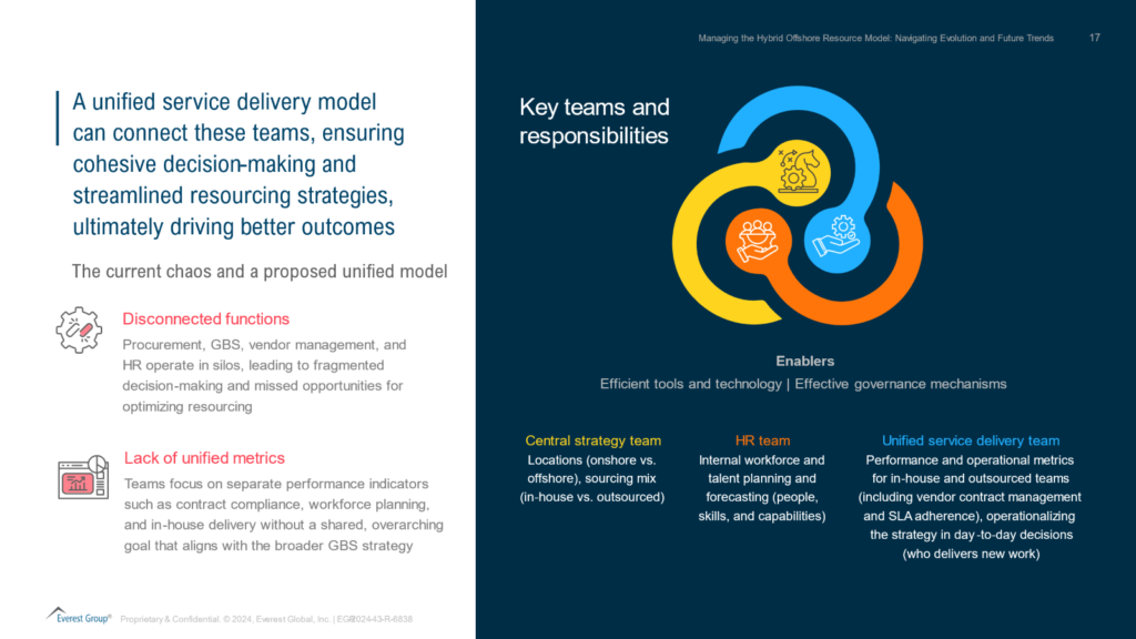 In this latest blog, Everest Group explores why a hybrid resourcing model is emerging as the resourcing model of choice for mature GCCs/GBS organizations and how leading enterprises are now navigating this decision.