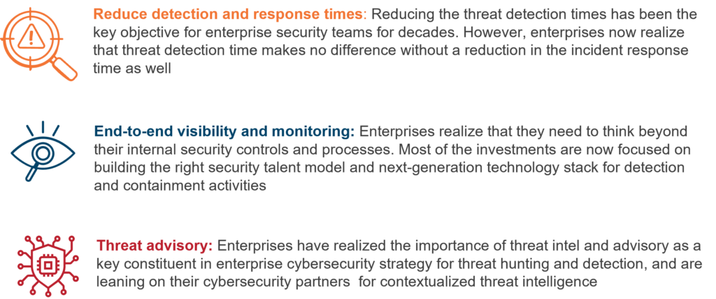 The cybersecurity outlook has shifted from business and IT-driven to the C-suite. Enterprise investments are now geared towards establishing cyber resiliency programs with holistic threat advisory, comprehensive monitoring, and faster response as the key building blocks.