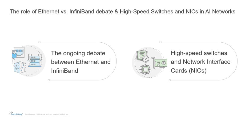 The outlook for 2025 and beyond: While Ethernet will continue to improve, InfiniBand currently remains the gold standard for ultra-high performance. Hybrid solutions featuring both technologies are likely to become increasingly common, offering enterprises the flexibility to choose the ideal infrastructure for specific AI workloads. Providers capable of integrating Ethernet and InfiniBand seamlessly will thrive, delivering tailored, cost-effective solutions that meet varied performance requirements.