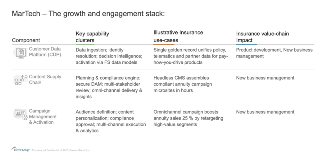 The surge in digital claims, embedded affinity programs and hyper-personalized campaigns has driven a need for specialized components that can scale independently and integrate through Application Programming Interfaces (APIs) and event-based triggers.