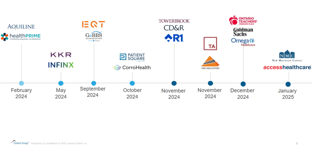 While a lot of PE investments have been made in the recent past, according to a research report, only about 30% of the firms listed on Becker’s list of “RCM firms to know” were owned by private equity, as of October 2024. With significant headroom for growth, the opportunity is ripe to invest in this space.