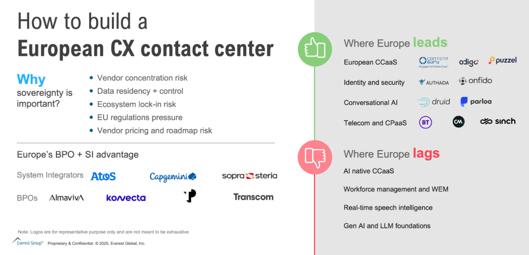 Europe has the foundation, the innovators, and the services ecosystem to power much of a sovereign CX stack. What it lacks for now are the AI-heavy engines that drive the most advanced experiences.