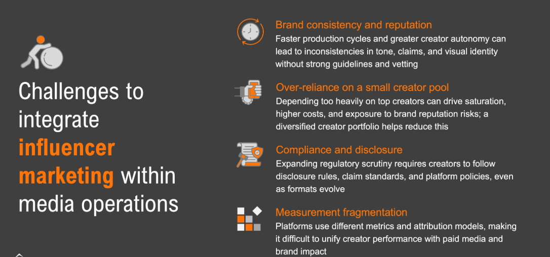 While the integration of influencers into media operations creates meaningful opportunities for greater relevance, speed, and creative diversity, it also introduces new complexities. The shift to creator-led content amplifies operational demands around governance, rights usage, compliance, and cross-channel consistency.