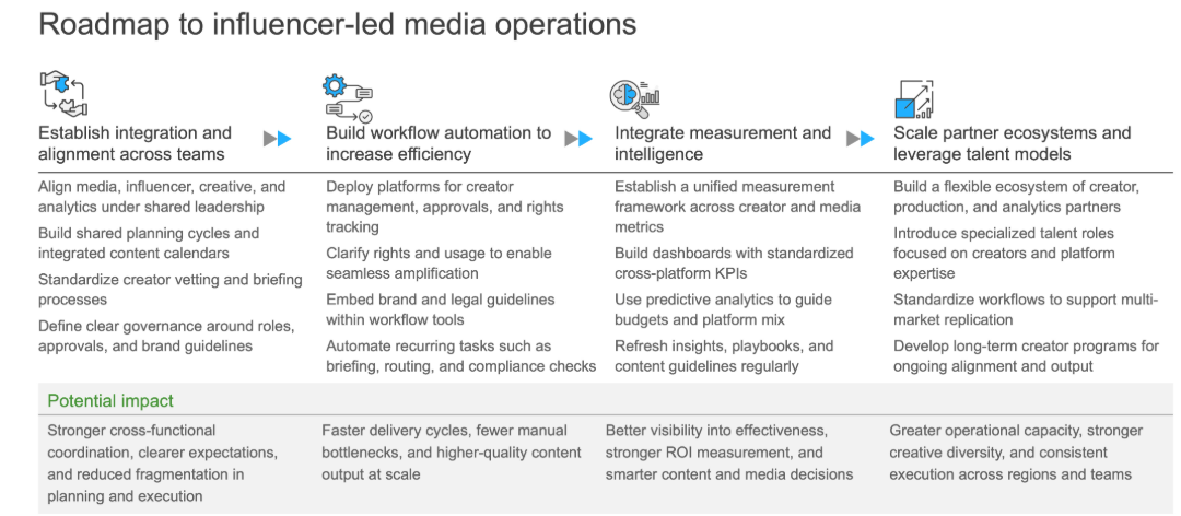 The risks and constraints outlined above underscore why many enterprises struggle to integrate influencer marketing into their broader media operations. These challenges are not simply tactical; they reveal deeper structural gaps in workflows, governance, technology, and cross-functional alignment. To address these barriers in a systematic and scalable way, brands need a clear roadmap that outlines how they should modernize their media operations.