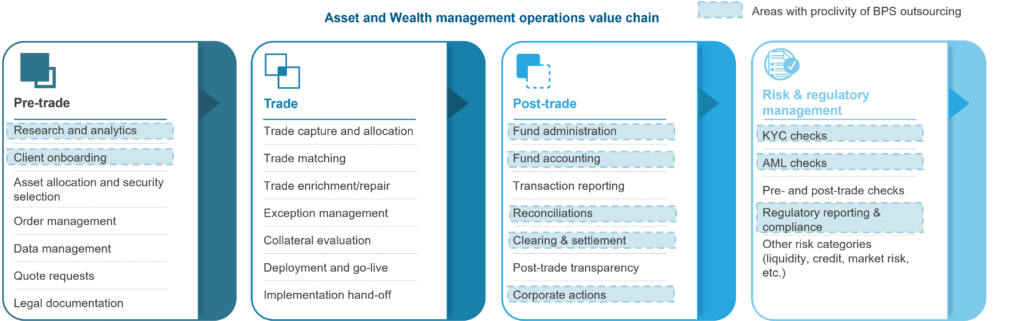 - Offshoring: Tier 2 and tier 3 banks that may feel more heat are expected to move more back-office and regulatory reporting operations to low-cost nearshore and offshore centers by partnering with BPS providers