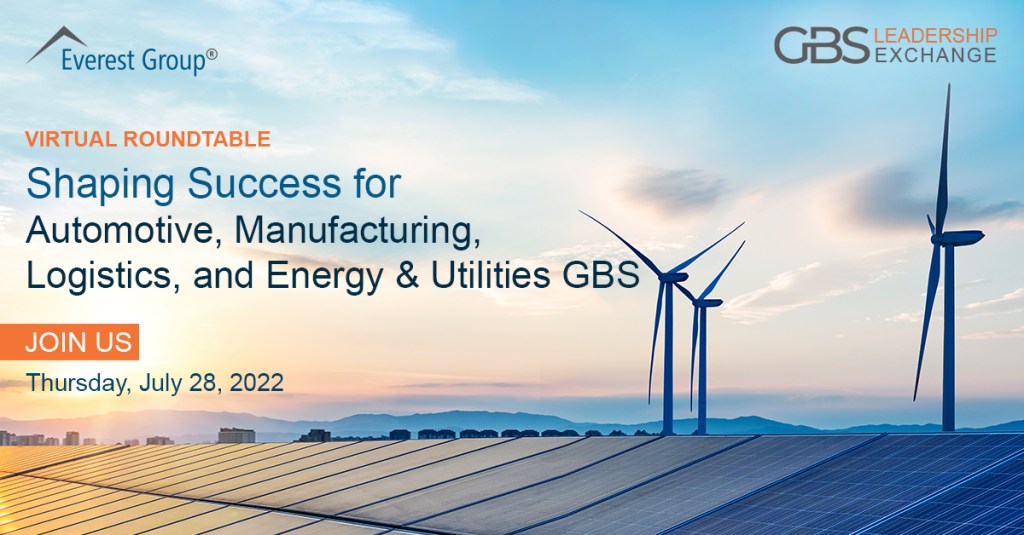 Join our exclusive GBS Leadership Exchange virtual roundtable, “Shaping Success for Automotive, Manufacturing, Logistics, and Energy & Utilities GBS,” on Thursday, July 28, 2022, 8:30 am – 10:00 am EDT / 6:00 pm – 7:30 pm IST.