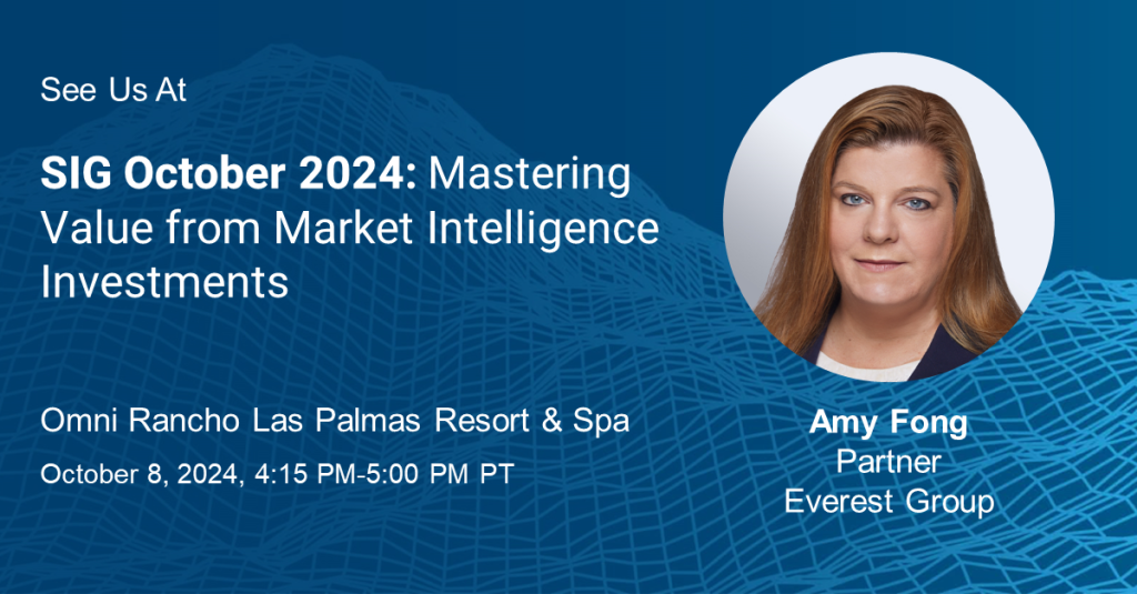 During the event, Everest Group Partner Amy Fong will present on “Mastering Value from Market Intelligence Investments.”