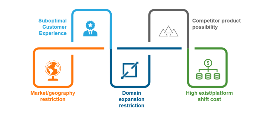 - High exit/platform shift cost: The cost of shifting the Veeva CRM to an alternate platform is exorbitant. In extreme scenarios, if Salesforce decides to annul the agreement on short notice, it will disrupt Veeva CRM and will massively affect all Veeva customers, leading to an indelible mark on the Veeva brand