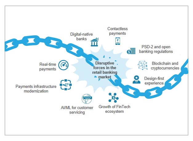 Technology is creating entirely new ways of serving the existing needs of customers and is significantly disrupting the value chain by improving the quality, speed, and price at which value is delivered. Challenger banks (FinTechs, non-traditional financial service providers, and neo-digital banks) are developing new products, services, and business models, impacting front- to back-office functions to compete with traditional banks. At the same time, regulators in Europe are pushing for open banking, thereby increasing API adoption among banks.