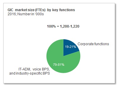 The global sourcing model for corporate functions has been adopted by many organizations. By corporate functions, we refer to Finance & Accounting (F&A), Human Resources (HR), procurement, legal, marketing, real estate, and corporate communications. Even amongst these functions, there are differences with respect to their Global In-house Center (GIC) market sizes (in FTEs) and adoption maturity. Traditionally, since it was one of the first functions to be delivered through the GIC model, F&A comprises the largest portion of the GIC market along with high adoption maturity, followed by HR and procurement. However, growth is also being witnessed in GIC delivery amongst the other corporate functions.