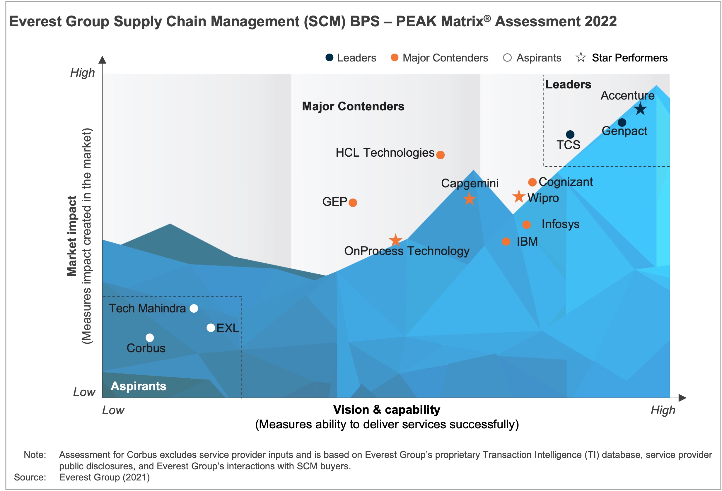 In this research, we present an assessment of 14 SCM service providers featured on the SCM BPS PEAK Matrix®2022 and categorize the providers as Leaders, Major Contenders, Aspirants, and Star Performers based on their vision and capabilities, and market impact.