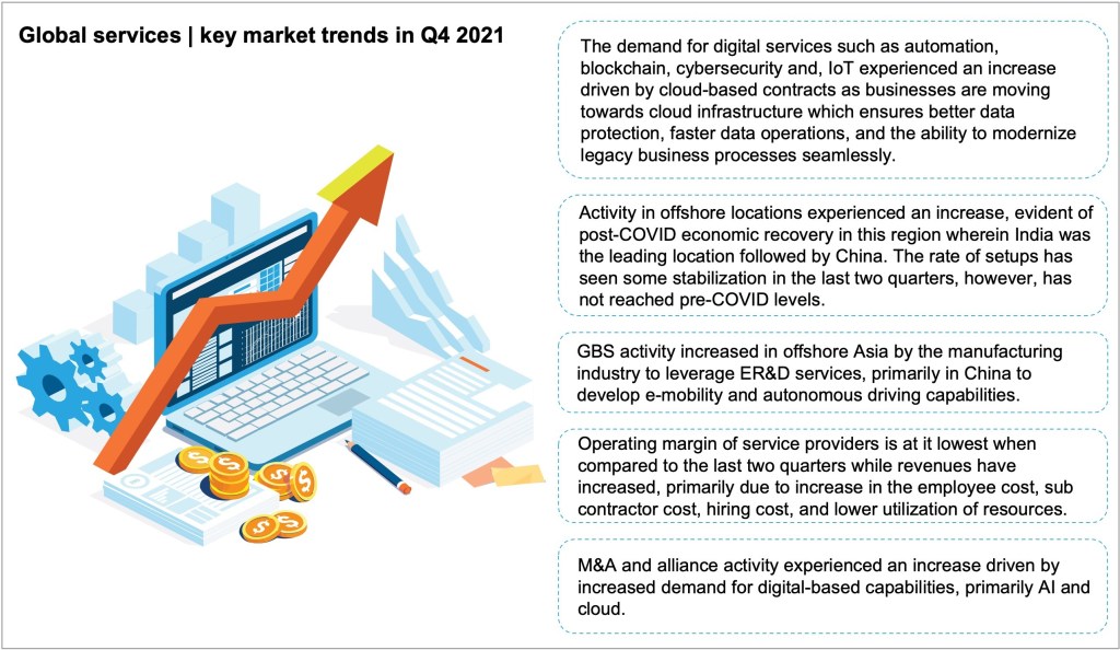 The Market Vista report highlights the key trends and developments in the fast-evolving global offshoring and outsourcing market. The study captures the key developments across outsourcing transaction trends, health of GBS centers, location risks and opportunities, and service provider developments.
