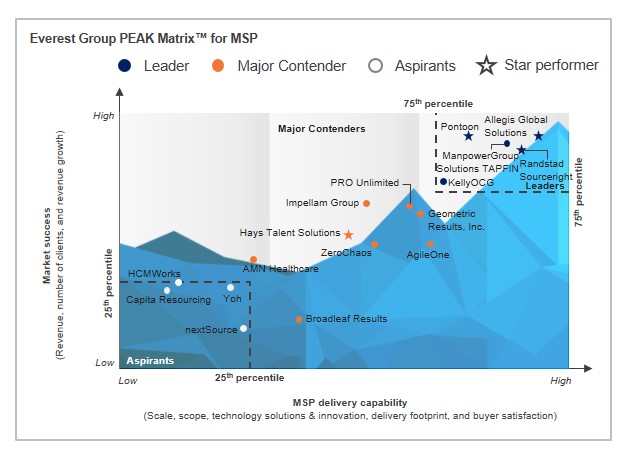 - Leaders: Allegis Global Solutions, KellyOCG, ManpowerGroup Solutions TAPFIN, Pontoon, and Randstad Sourceright
