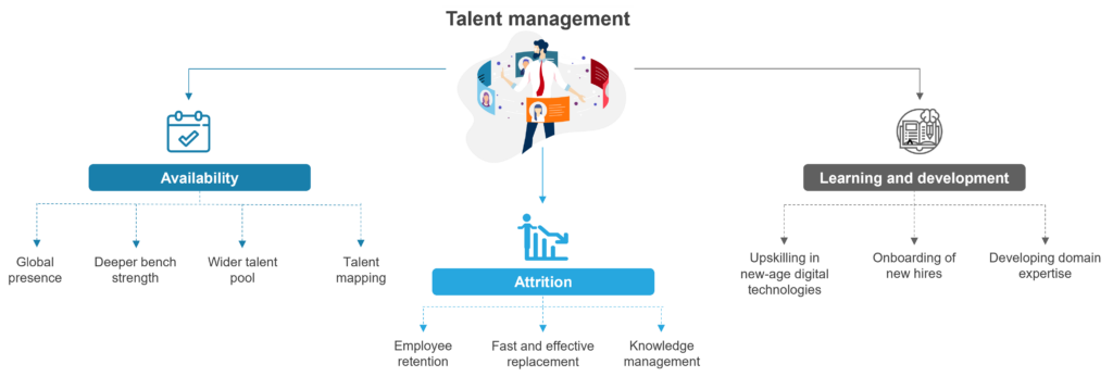 Enterprises want their partners to ensure talent availability, invest in learning and development to improve quality, and manage attrition by ensuring employee retention and faster replacement of exiting talent, as shown below: